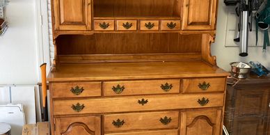 This finely made hutch was a family heirloom, but did not fit the style of furnishings in it's new home, so hardware and finish changes made it fit right in