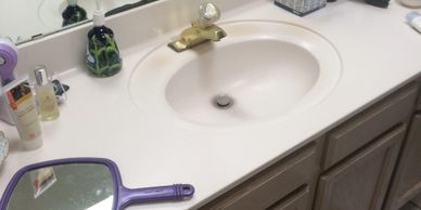 The vanity in this guest bathroom was original to the house. The countertop height was also quite short. The old countertop was removed and the height of the vanity was increased 8”. The homeowner provided the sink and tiles to give the bathroom a traditional Mexican feel. We installed the tiles and sink and painted the cabinets to match.