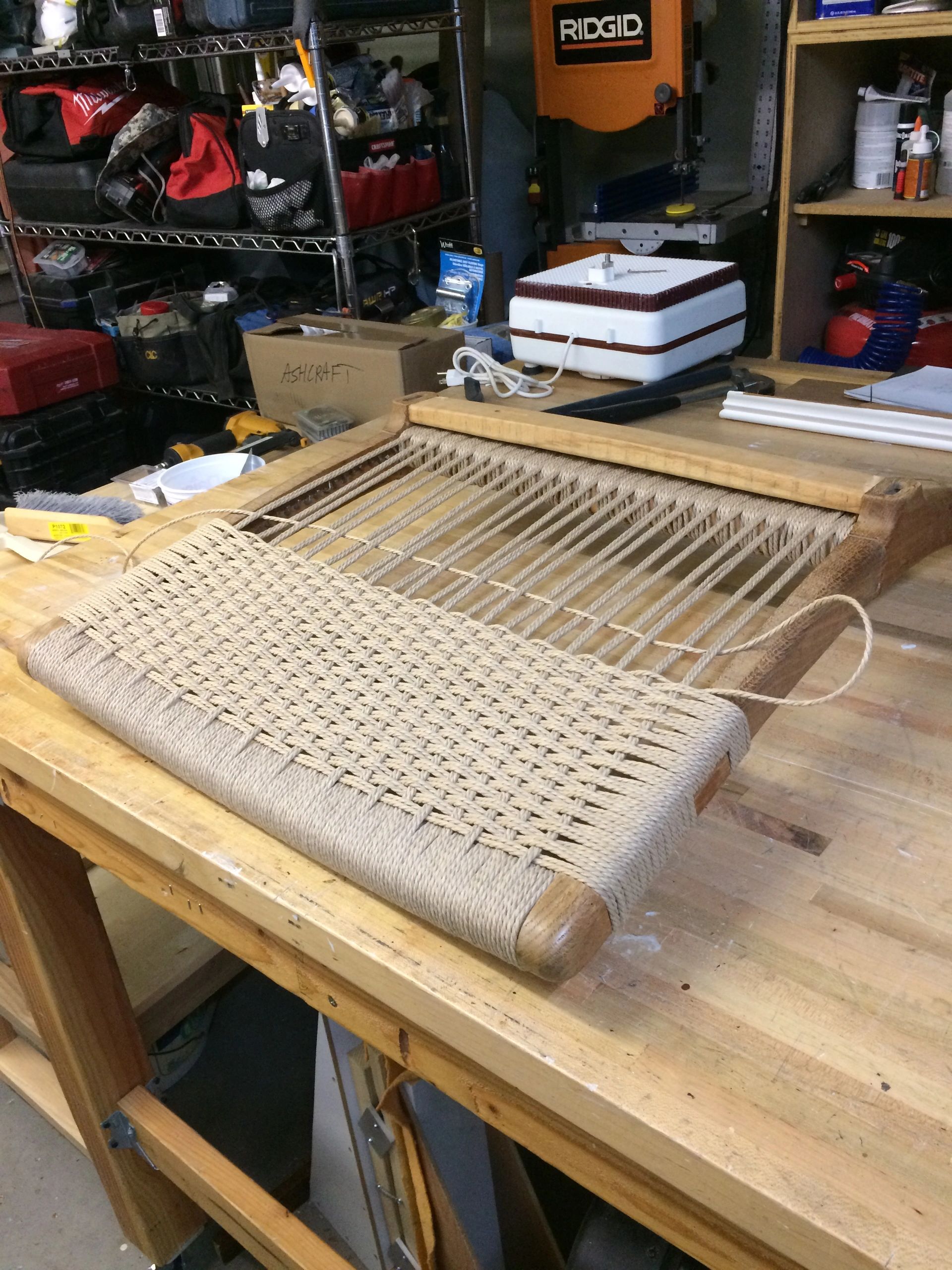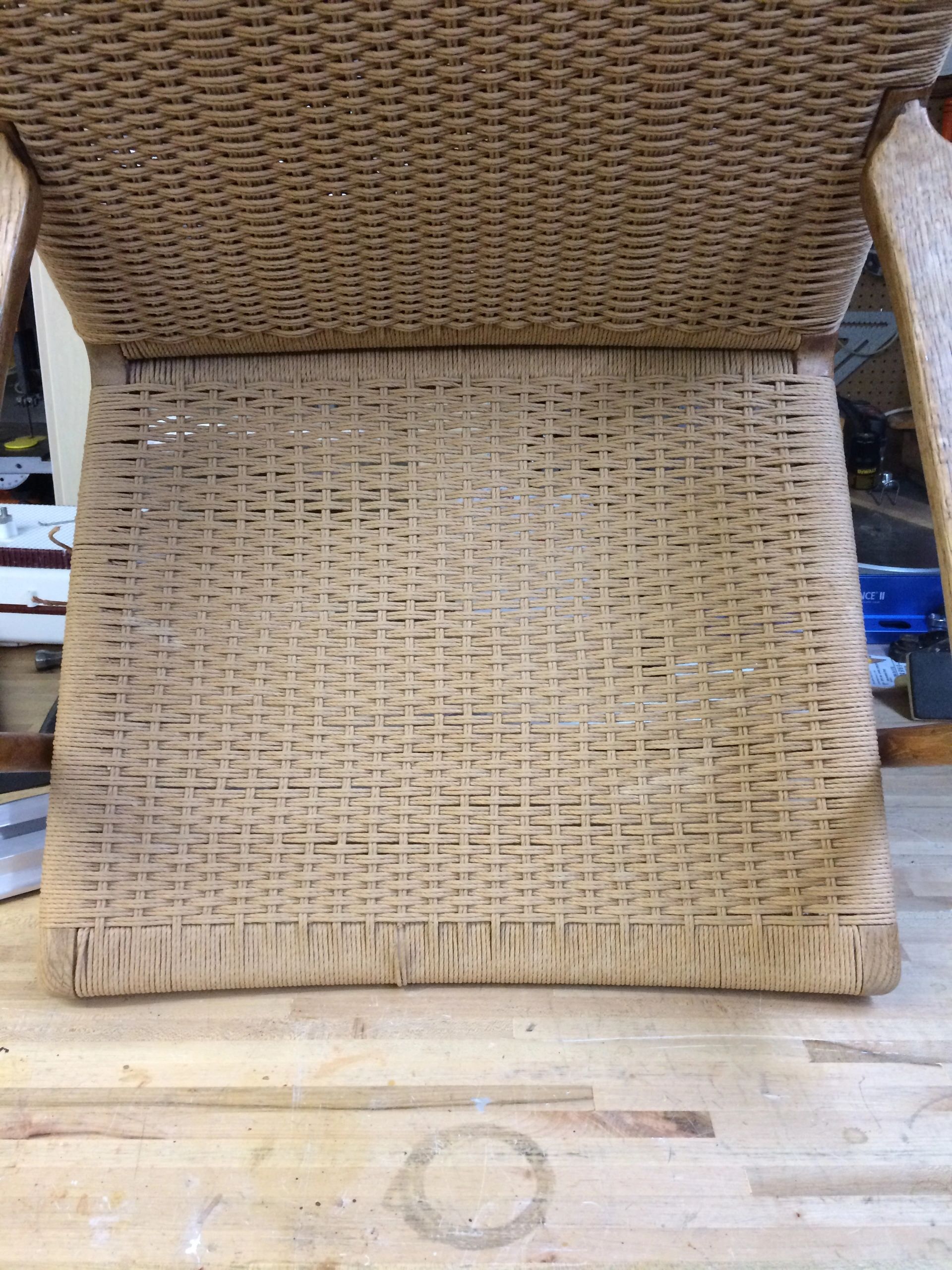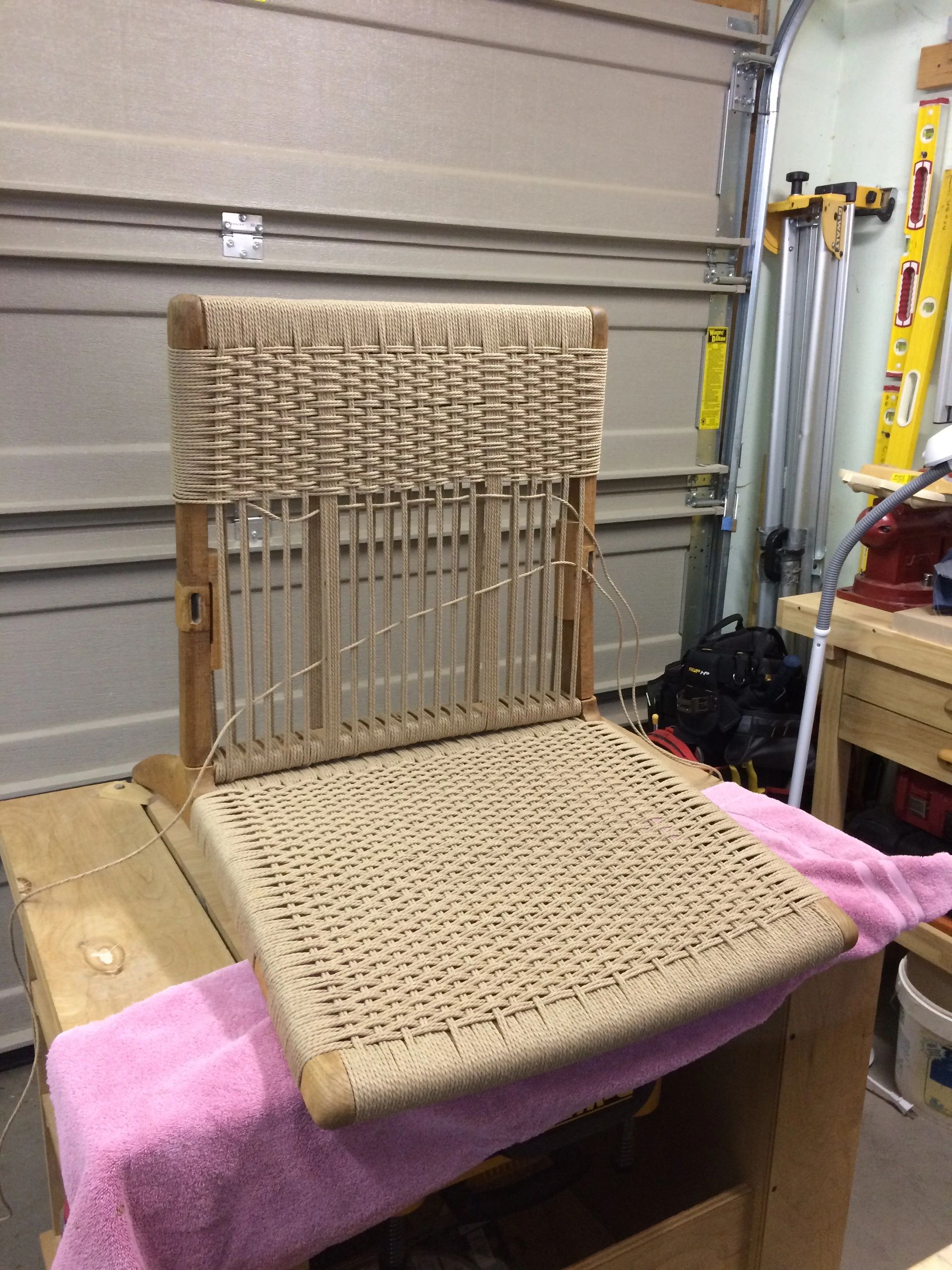 In process of weaving the chair back