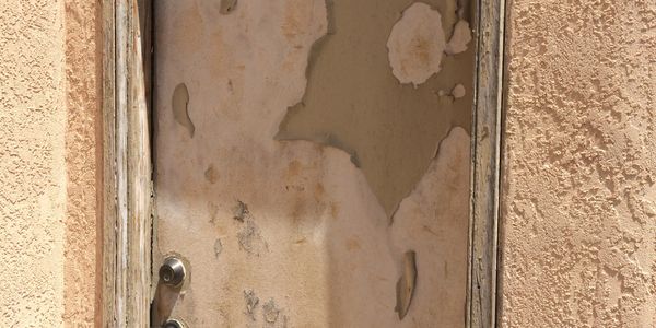 The frame and door slab of this side garage door was very badly deteriorated. The new slab, frame, and interior trim were pre-painted and replaced. The exterior wood brick mould trim was replaced with aluminum trim for durability and less maintenance down the road.