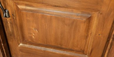 Beautiful custom carved entry door was sun and weather worn, custom matched finish close to original wash brought it back to looking new