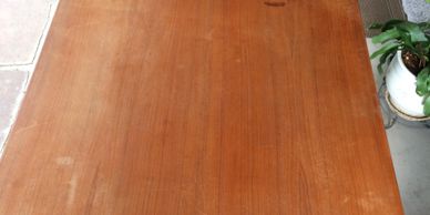 This dining table had extensive damage to the finish and the surface. Repairs were made and the table was finished slightly darker than original at the customer’s request.