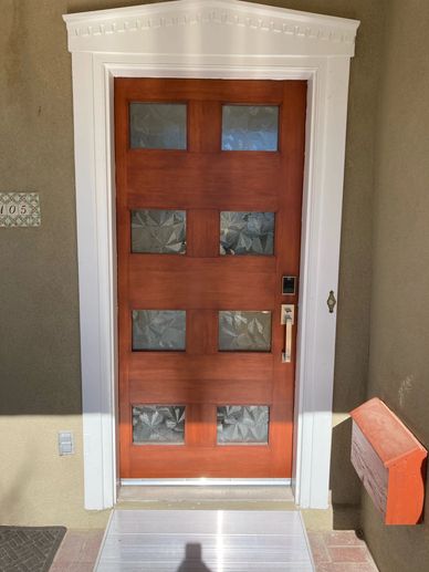 Old doors can be replaced with new, energy-efficient, beautiful options. When needed, entire frames, trim, and windows or doors can be replaced. In some cases, new door slabs can be fit into existing door frames that are still in good shape. New weatherstripping and hardware can update some existing openings and help seal up drafts and correct operation problems.